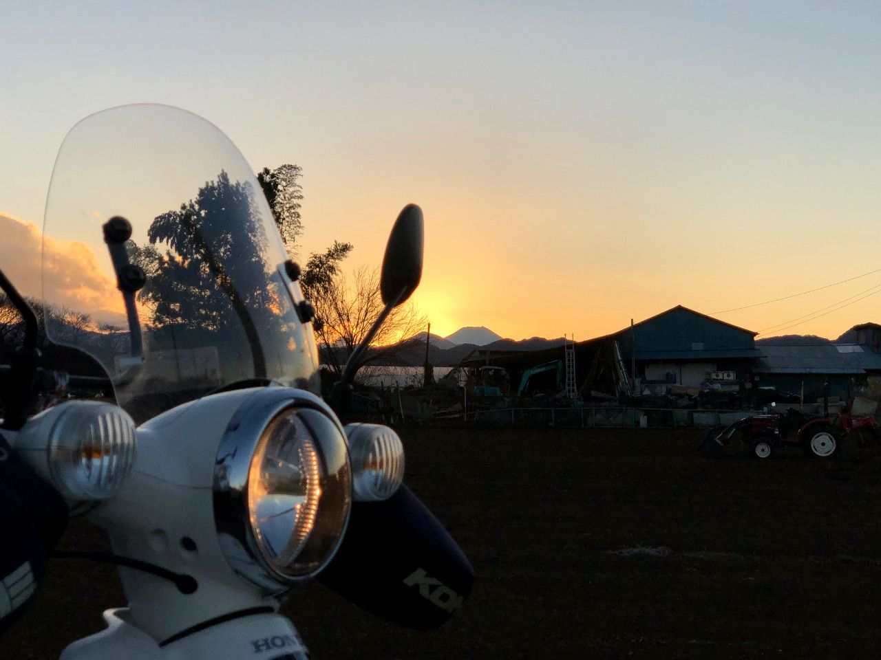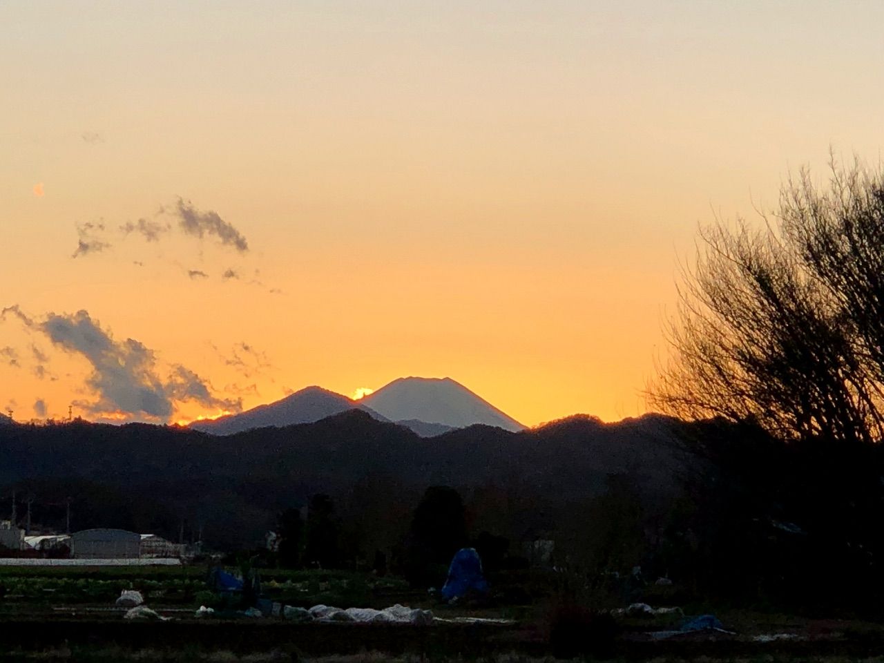 富士山の向こう側に夕陽が落ちるので